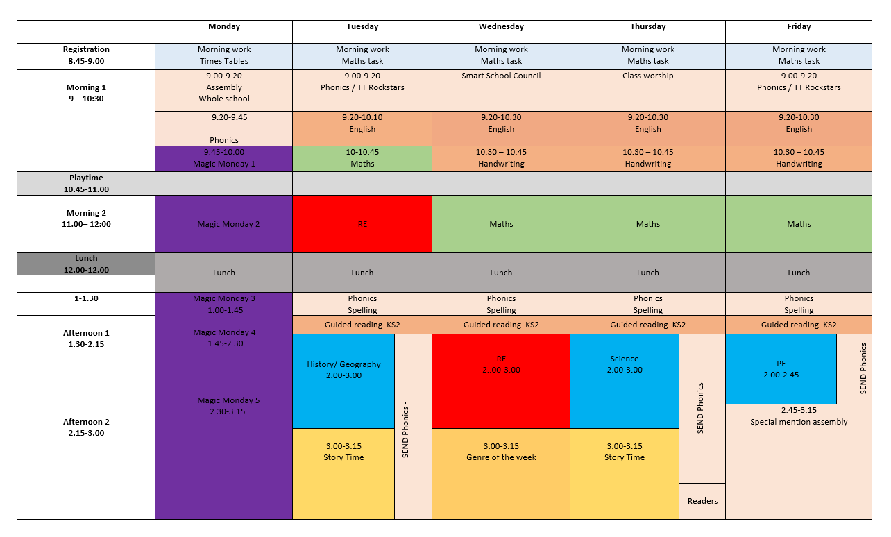 Weekly timetable in Y3