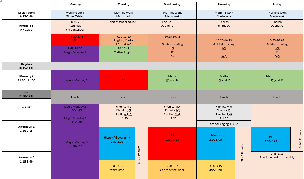 Extra support: Ms Casey - SEND support, Miss White - phonics, Mr Groarke Guided Reading and Spelling. Mrs Backhouse joins us in delivering interventions and hearing readers.